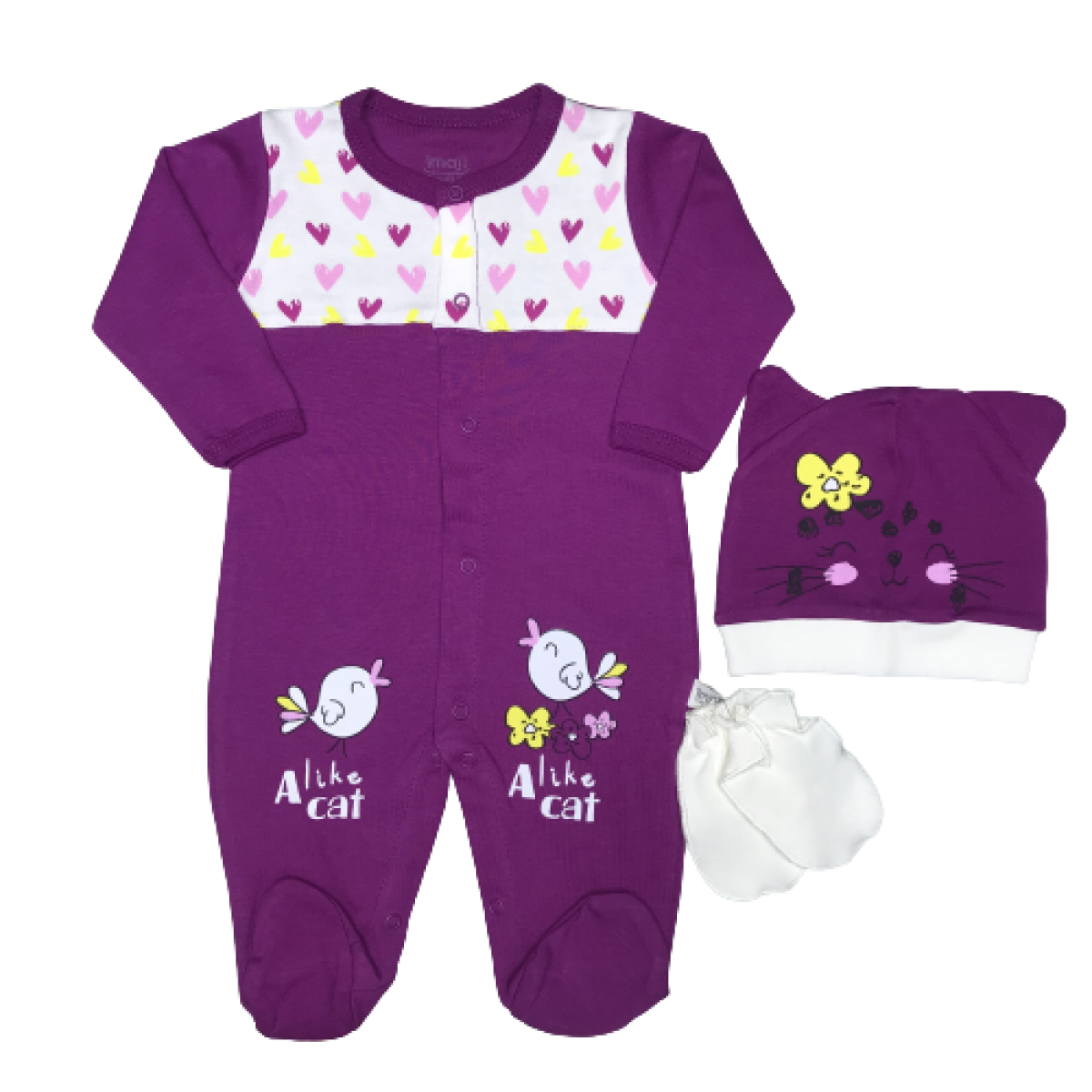 KEDI BASKILI 3'LU TULUM 1-6 AY