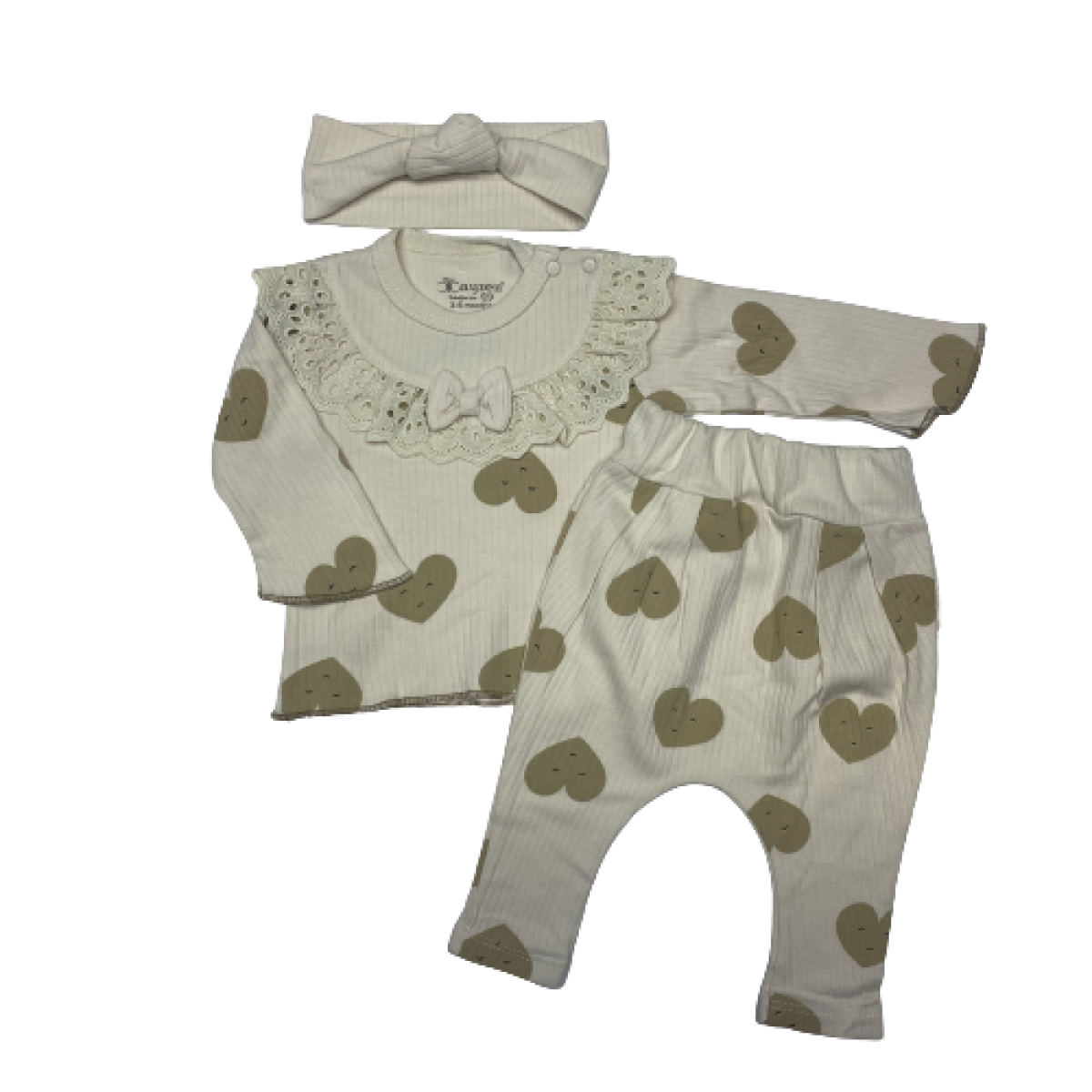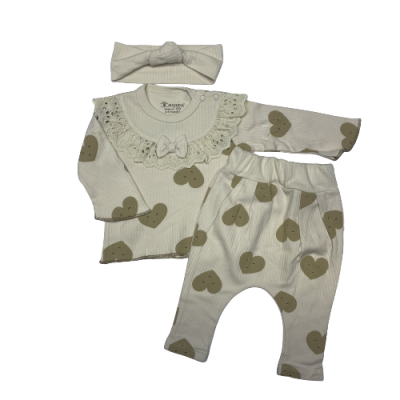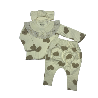 4026DANTEL YAKALI KALP BASKILI 3'LU TAKIM 6-12 AY