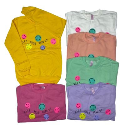 568 EMOJI BASKILI 2 IP SARDONLU SWEAT 8-12 YAS