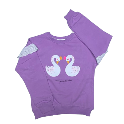 1668 OMUZ DANTEL FIRFIRLI KUGU BASKILI SWEAT 1-4 YAS