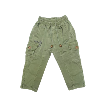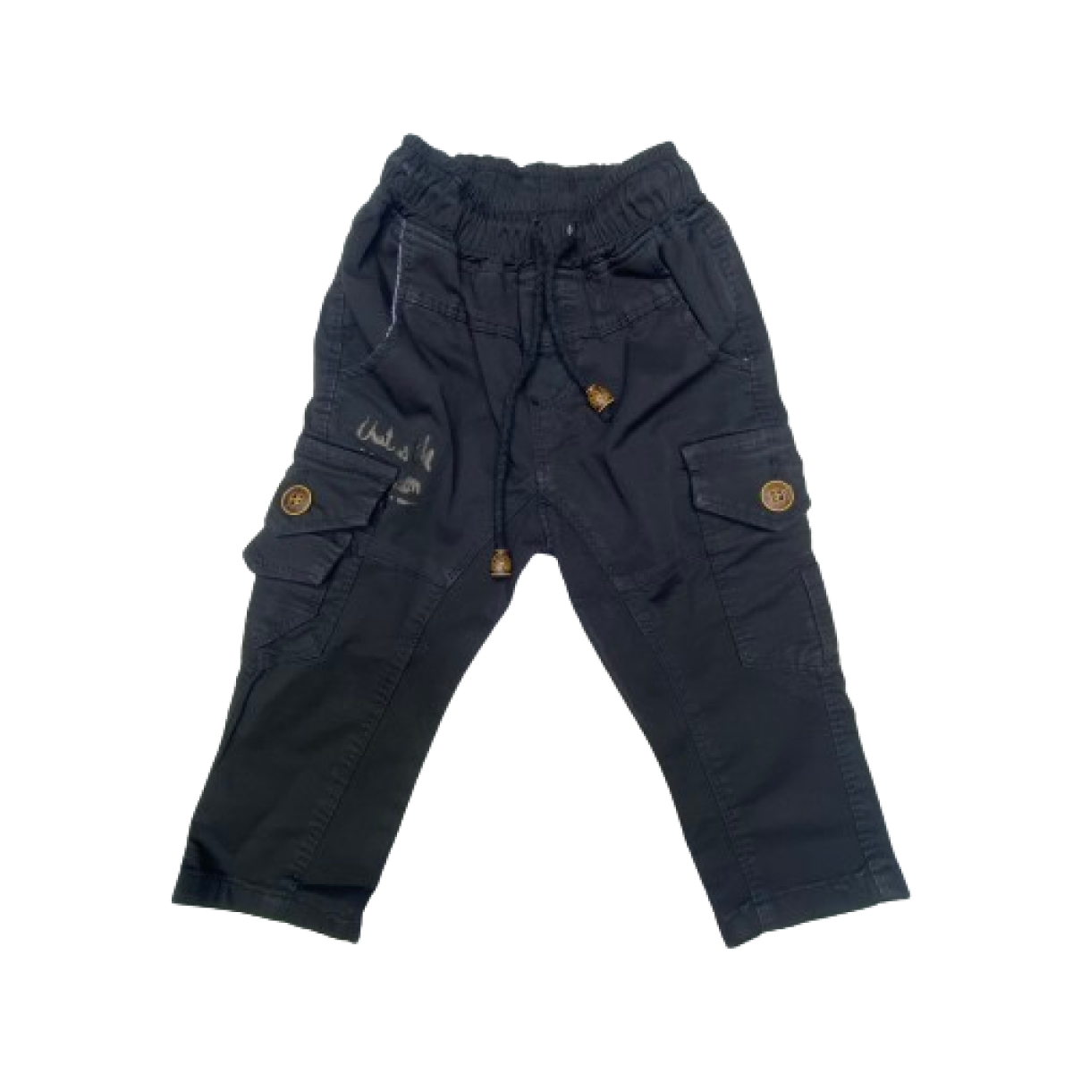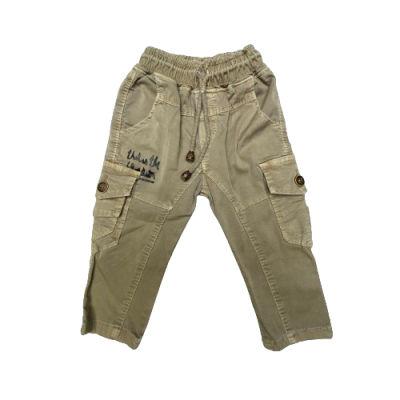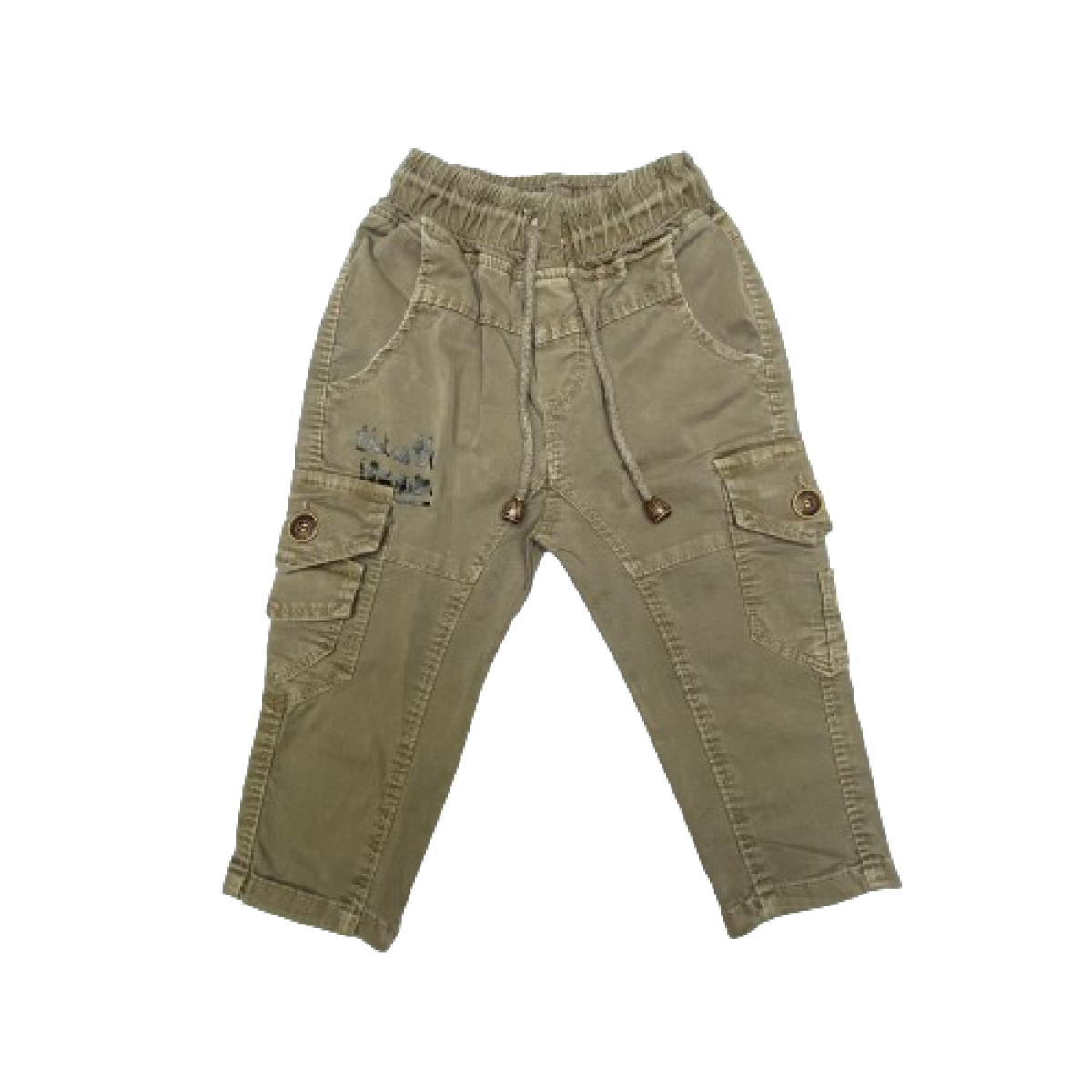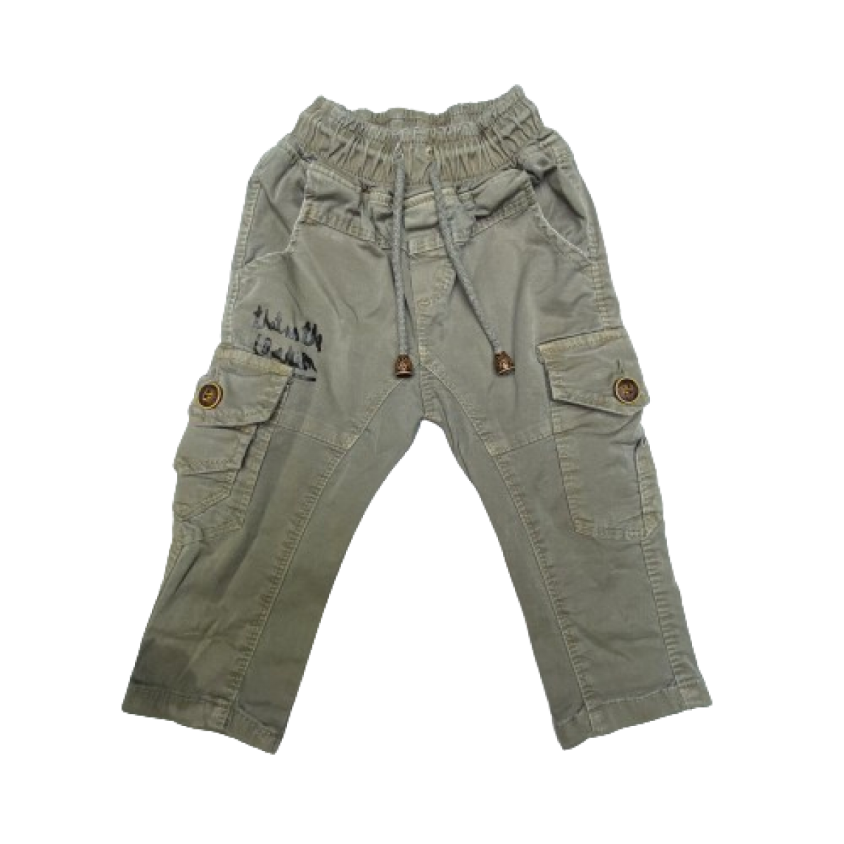 1416 YAZI BASKILI KOMANDO CEPLI KETEN PANTOLON 6-24 AY