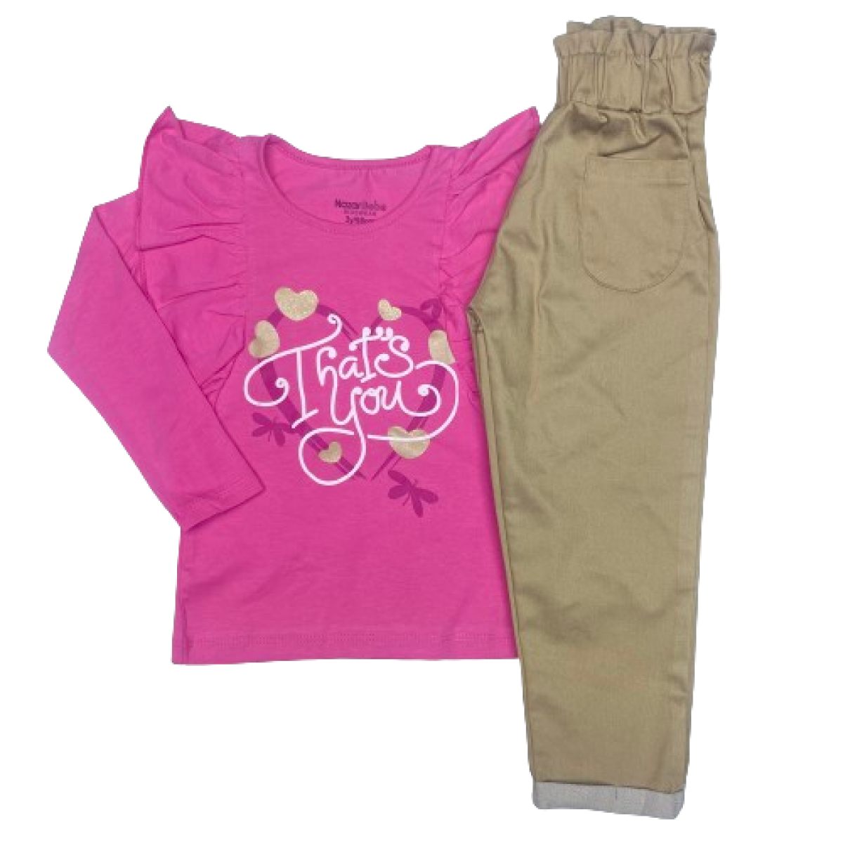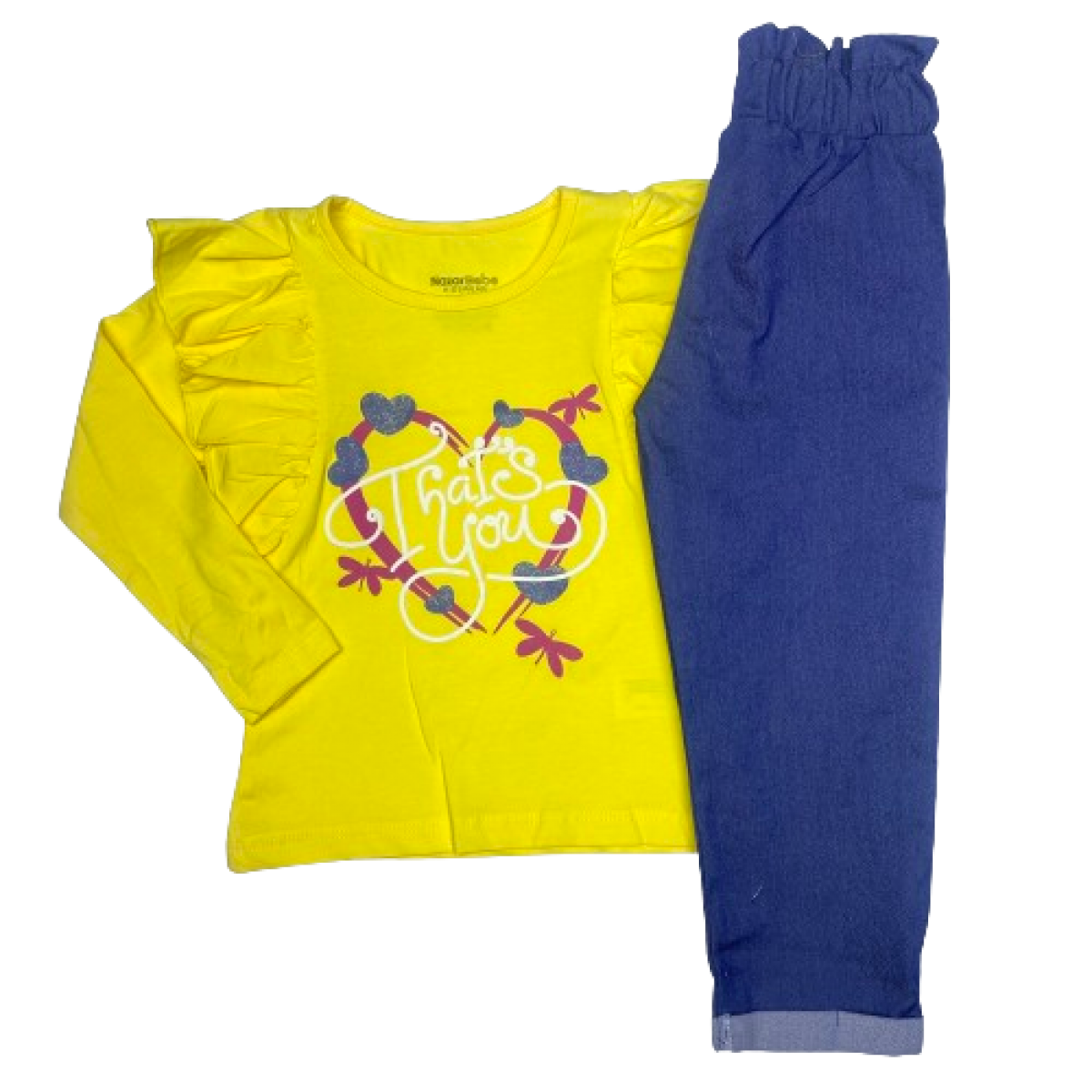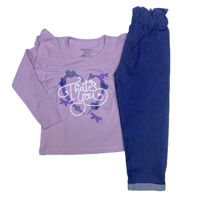 24161 KALP BASKILI KOT PANTOLONLU 2'LI TAKIM 3-6 YAS
