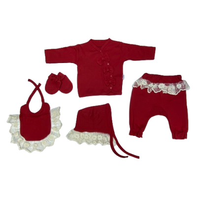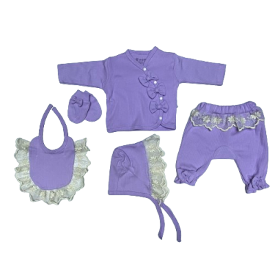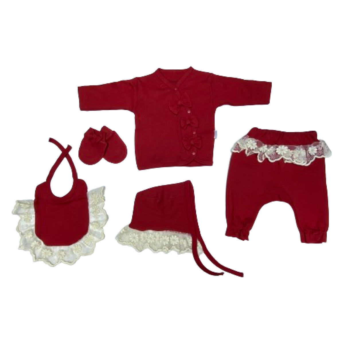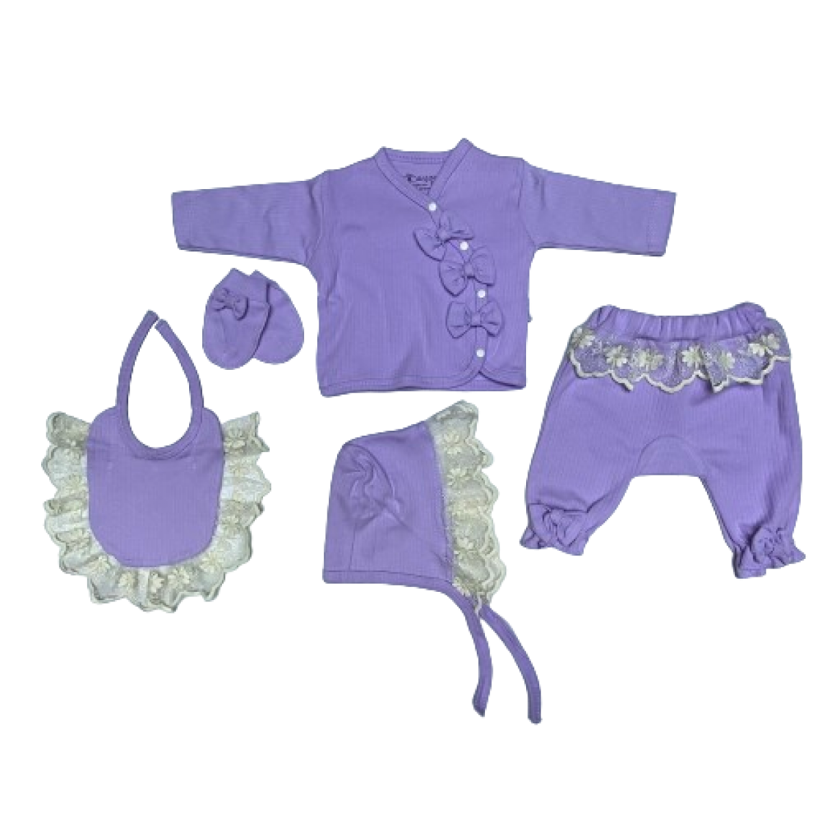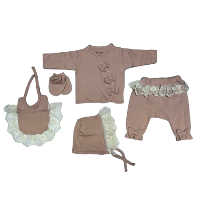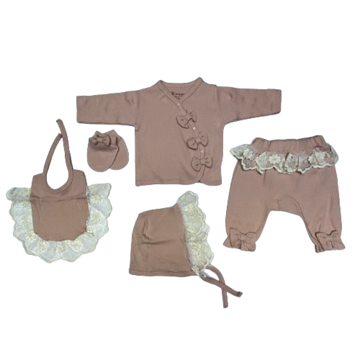 2053 DANTEL DETAYLI FIYONKLU 5'LI YENIDOGAN SET 0-3 AY