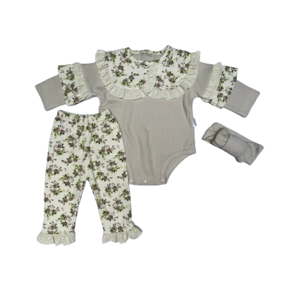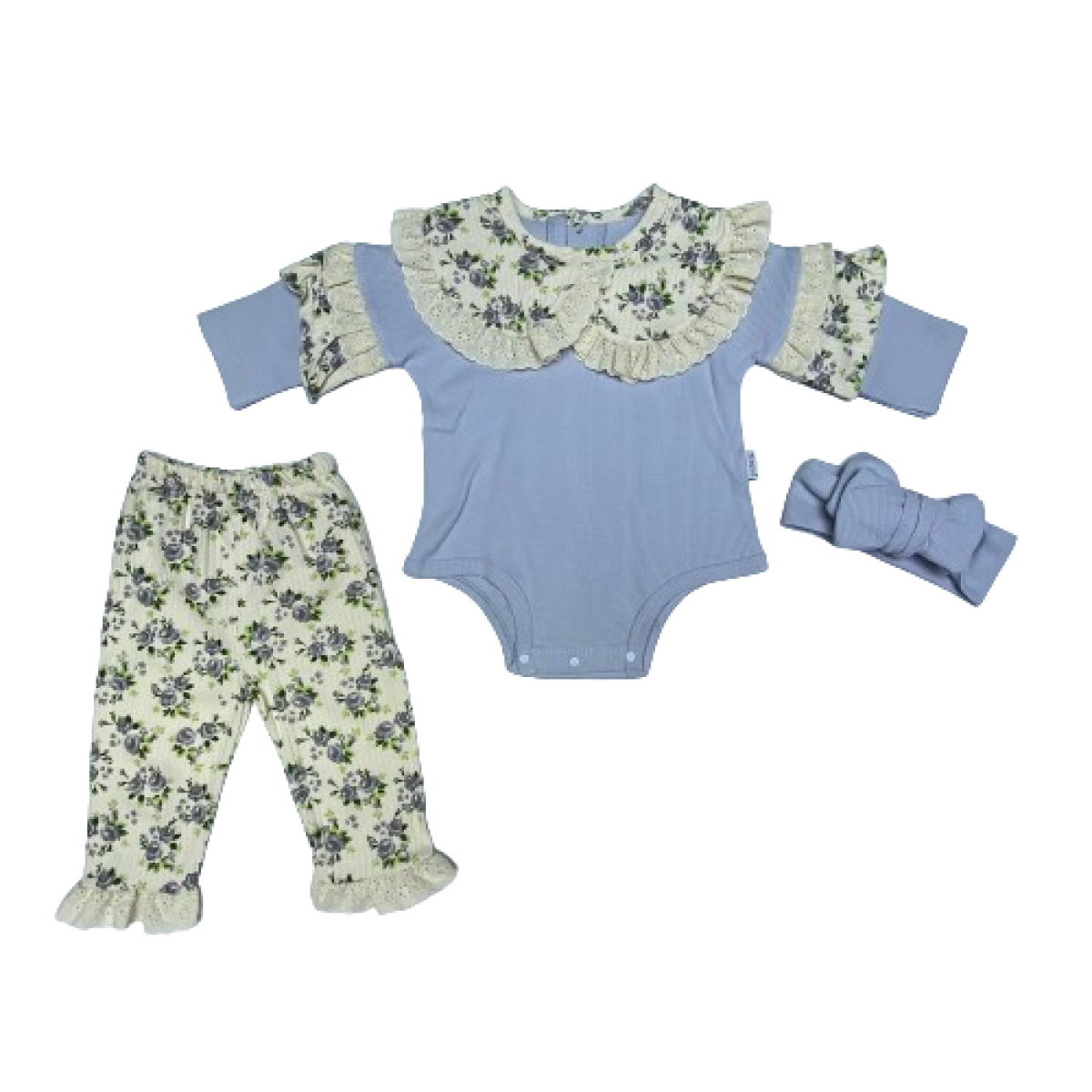 4035 CICEK DESENLI DANTELLI 3'LU TAKIM 6-18 AY