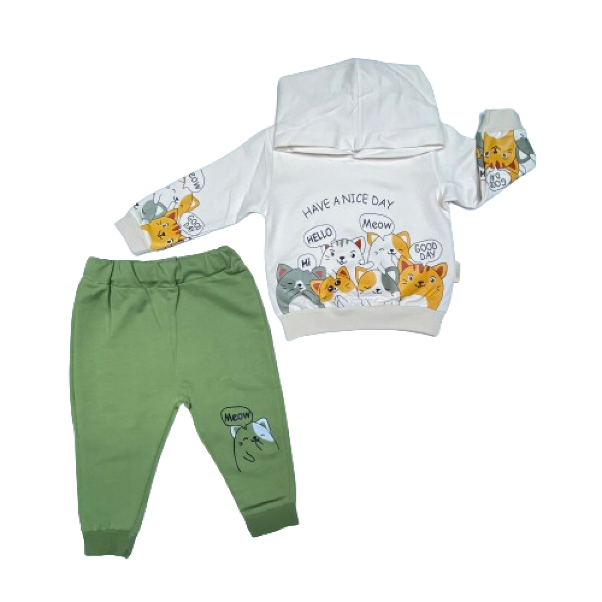 241059 KEDI FIGUR BASKILI KAPSONLU 2'LI TAKIM 9-24 AY