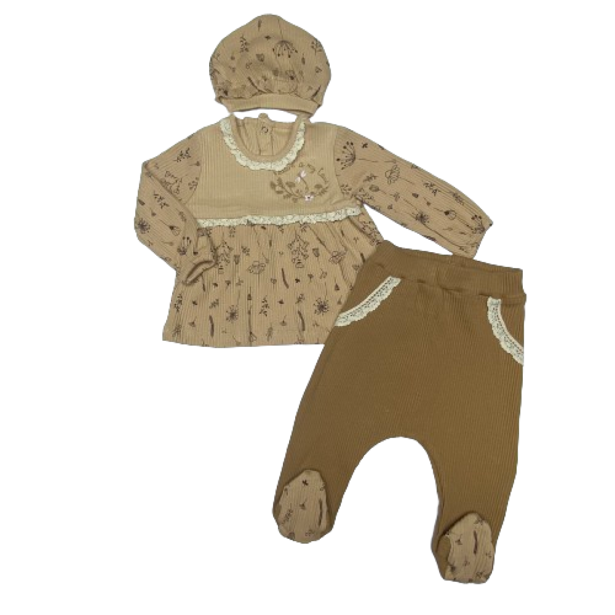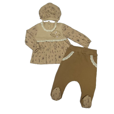 241072 DANTEL DETAYLI CICEK NAKISLI 2'LI TAKIM 0-6 AY