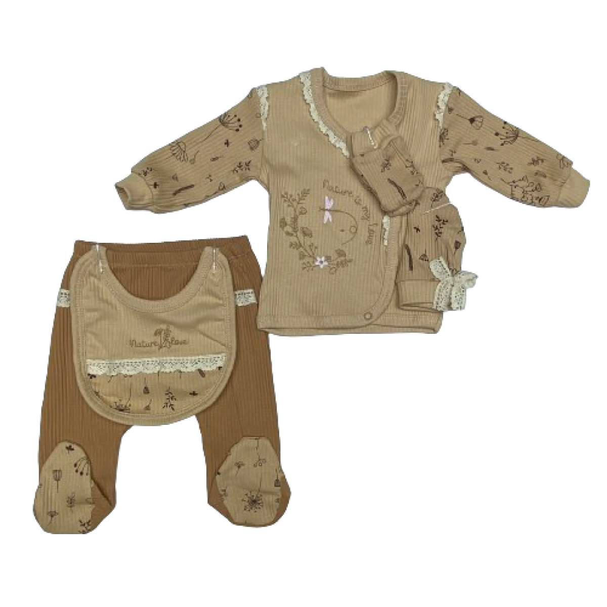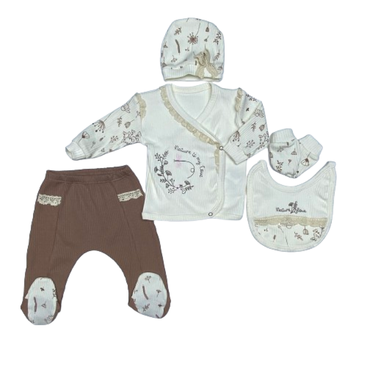 241074 DANTEL DETAYLI CICEK DESENLI YENIDOGAN 5'LI SET 0-3 AY