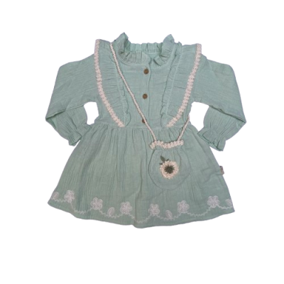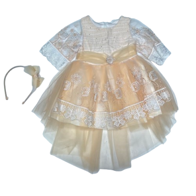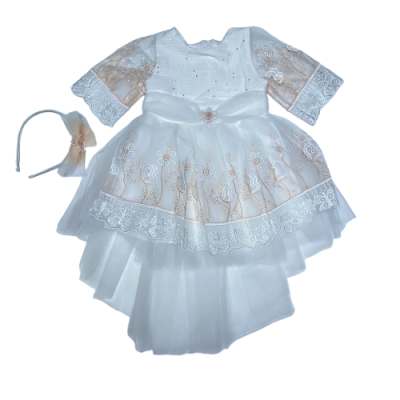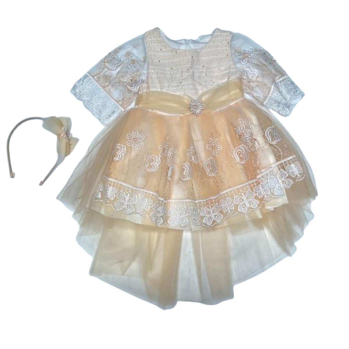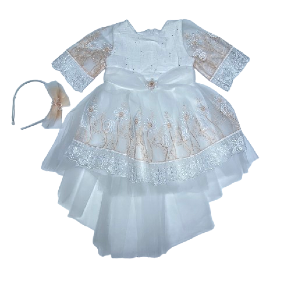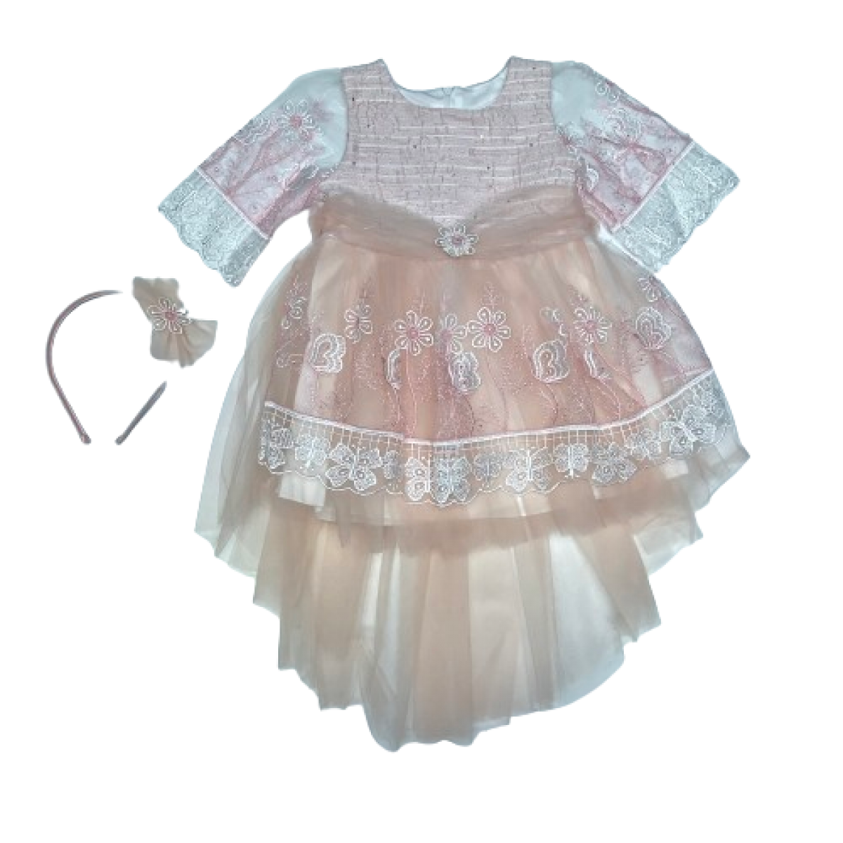 679 DANTEL KOLLU KELEBEK NAKISLI TACLI ELBISE 2-4 YAS