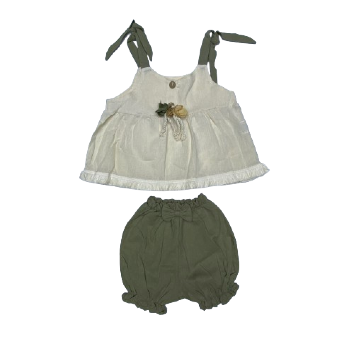 2405 DUGMELI CICEK DETAYLI BLUZLU 2'LI TAKIM 9-24 AY