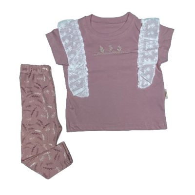 2446 BRODELI YAZO BASKILI NAKISLI 2'LI TAKIM 3-6 YAS
