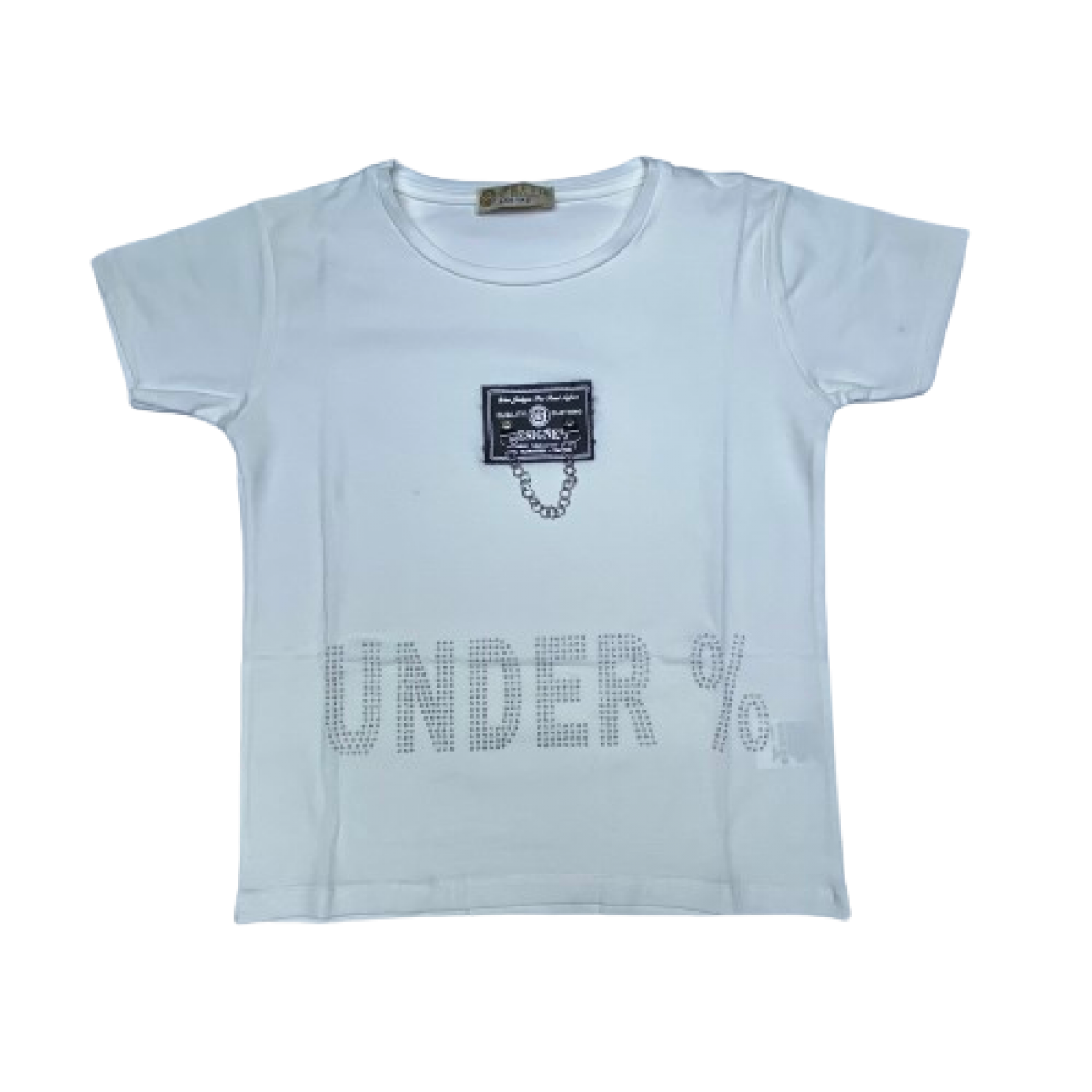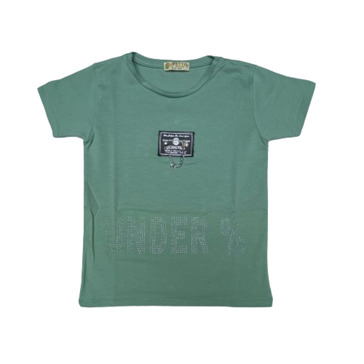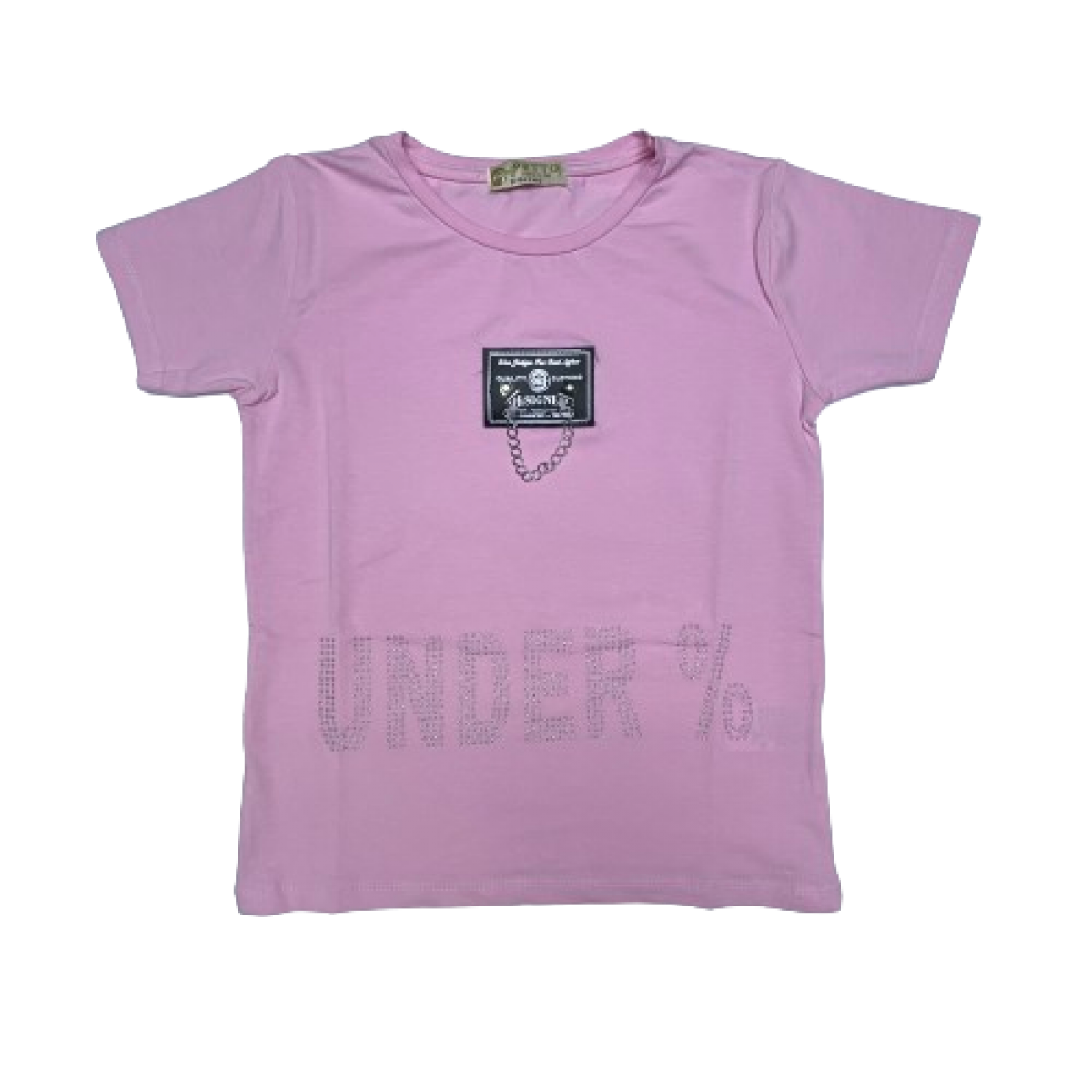 1237 YAZI NAKISLI ZINCIR DETAYLI KIZ T'SHIRT 9-12 YAS