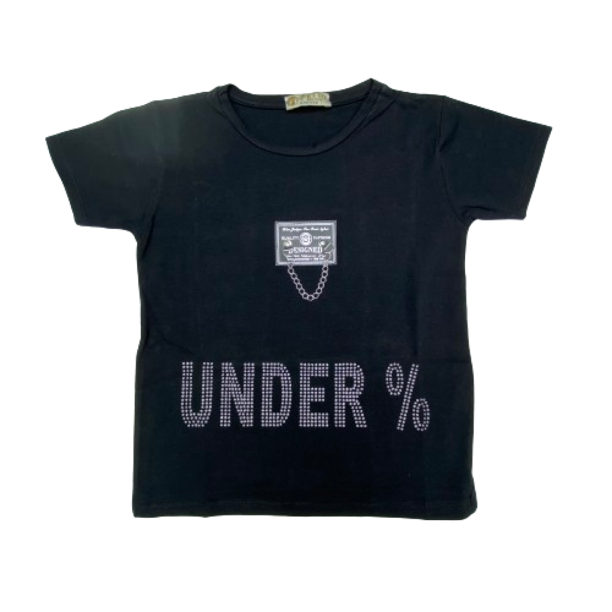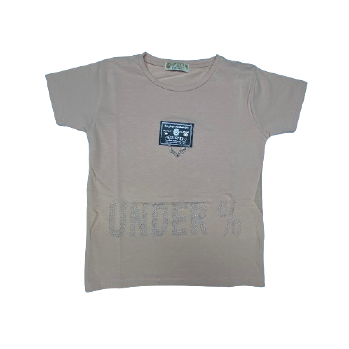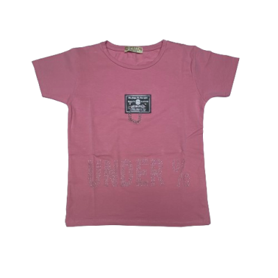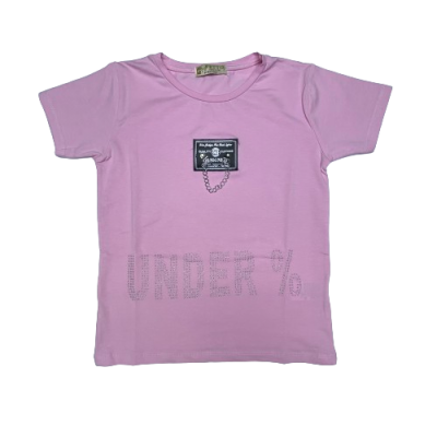 1237 YAZI NAKISLI ZINCIR DETAYLI KIZ T'SHIRT 9-12 YAS