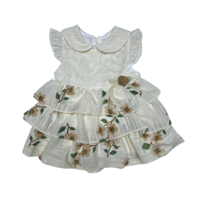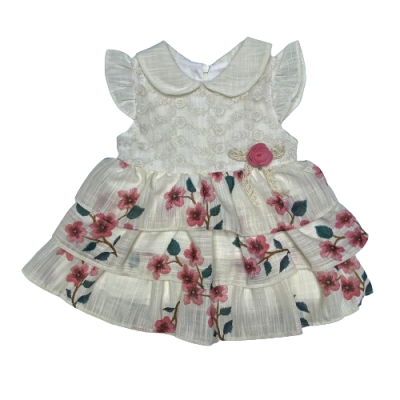 224 CICEK BASKILI FIRIFRLI KETEN ELBISE 9-24 AY