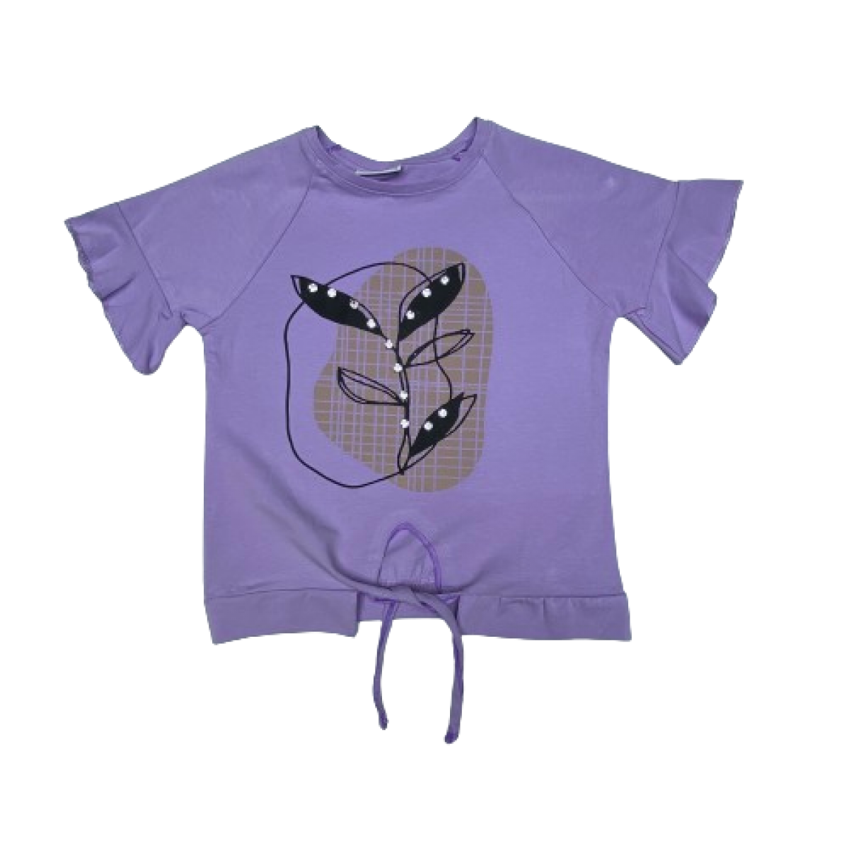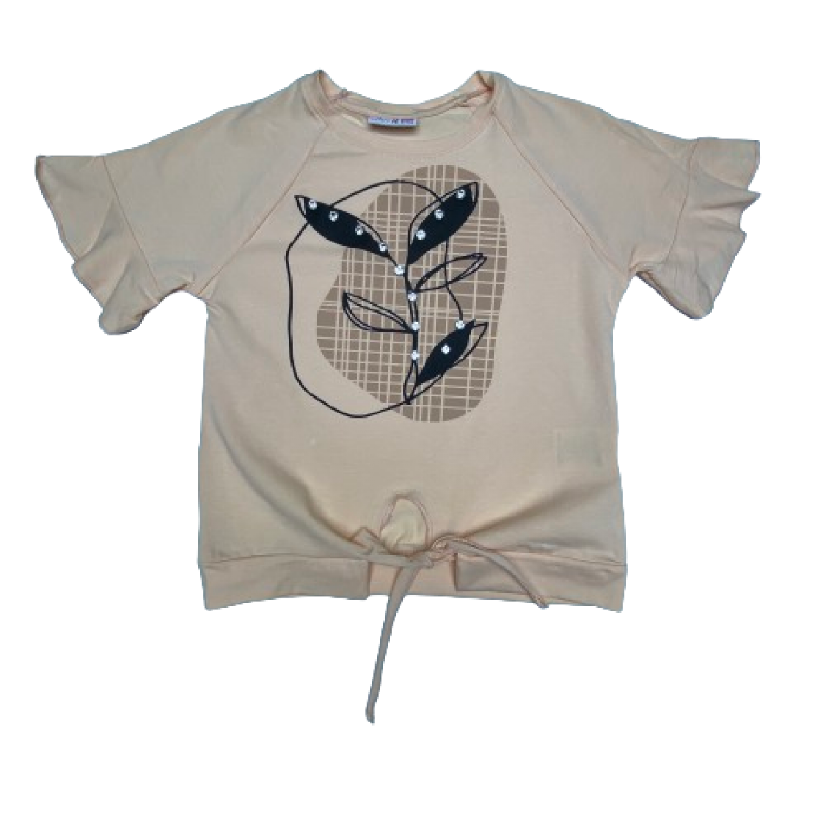 6078 TASLI YAPRAK BASKILI T'SHIRT 9-12 YAS