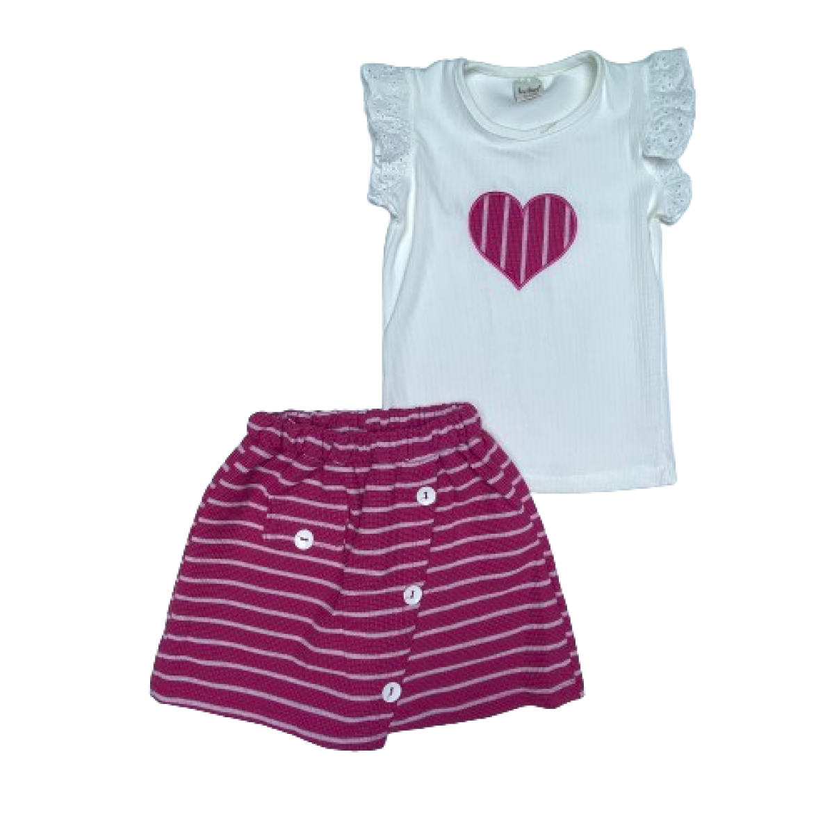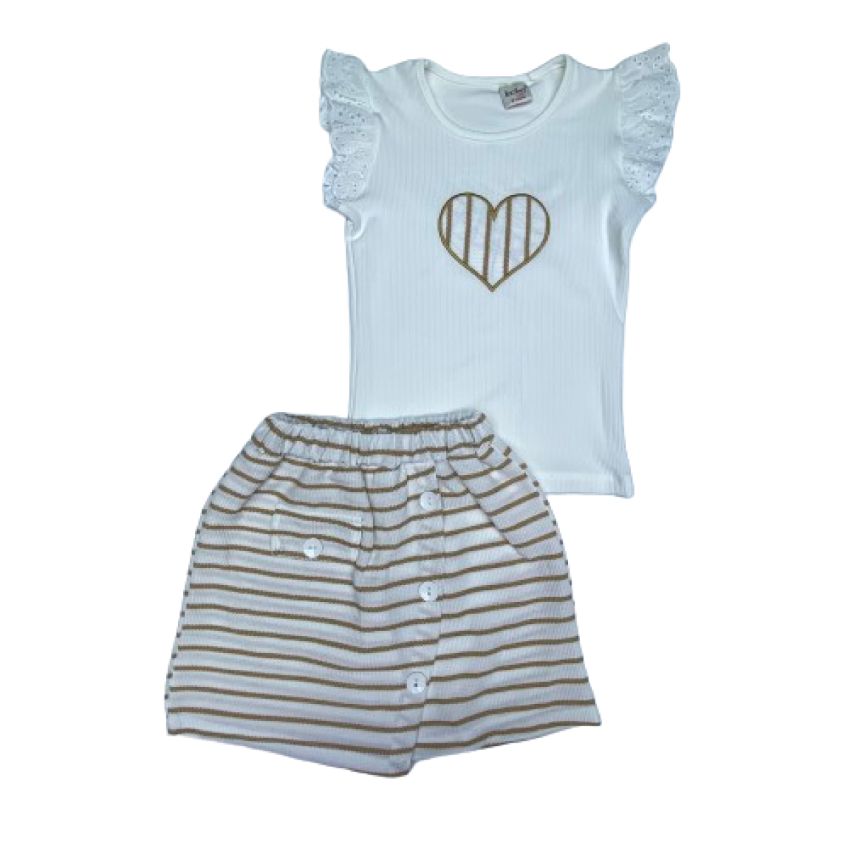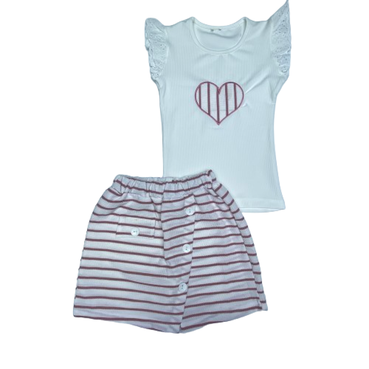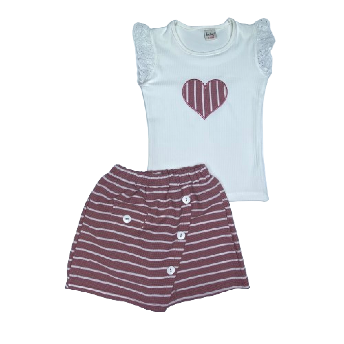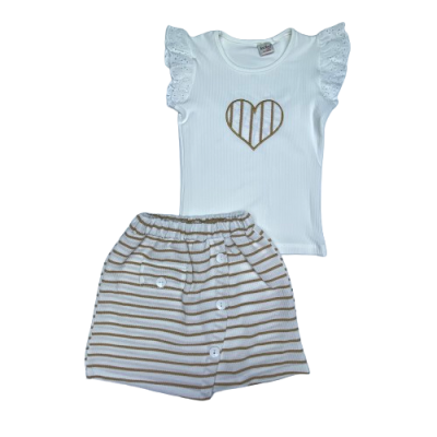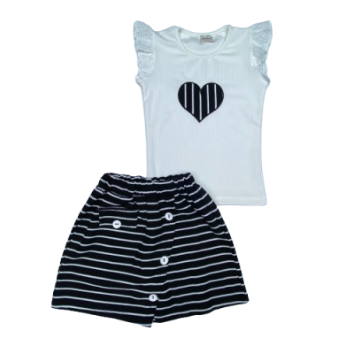 0073 KALP NAKISLI CIZGILI SORT ETEKLI 2'LI TAKIM 8-12 YAS