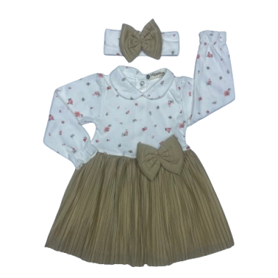 6065 CICEK BASKILI ETEGI PILELI ELBISE 9-18 AY