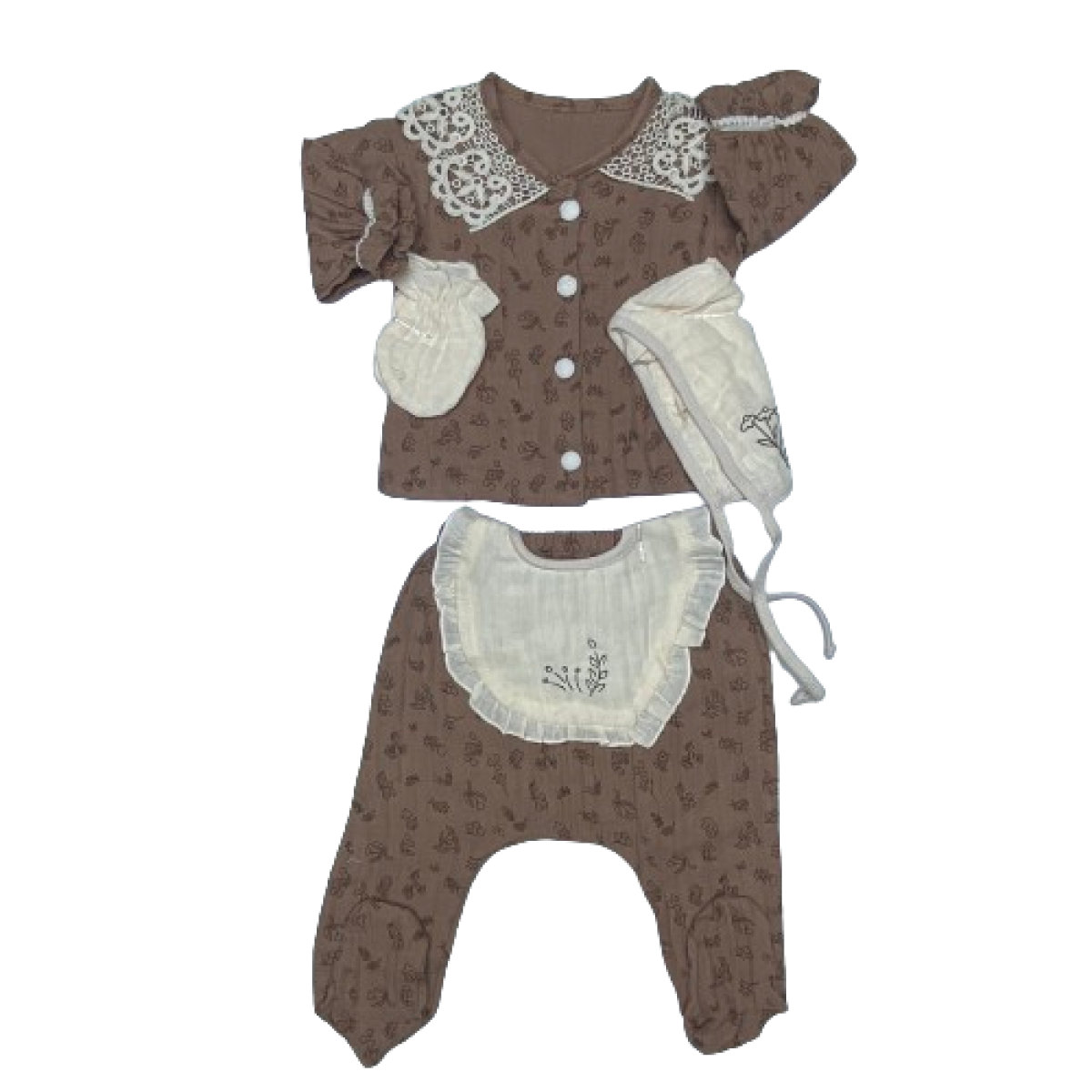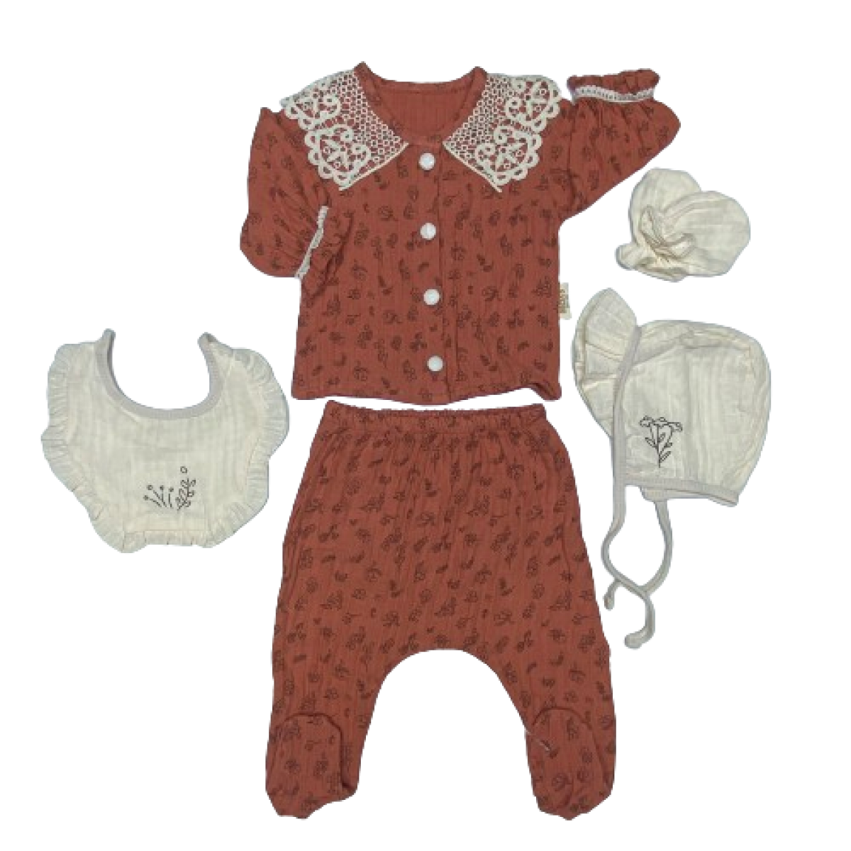 241098 DANTEL YAKALI CICEK DESENLI 5'LI ZIBIN SET 0-3 AY