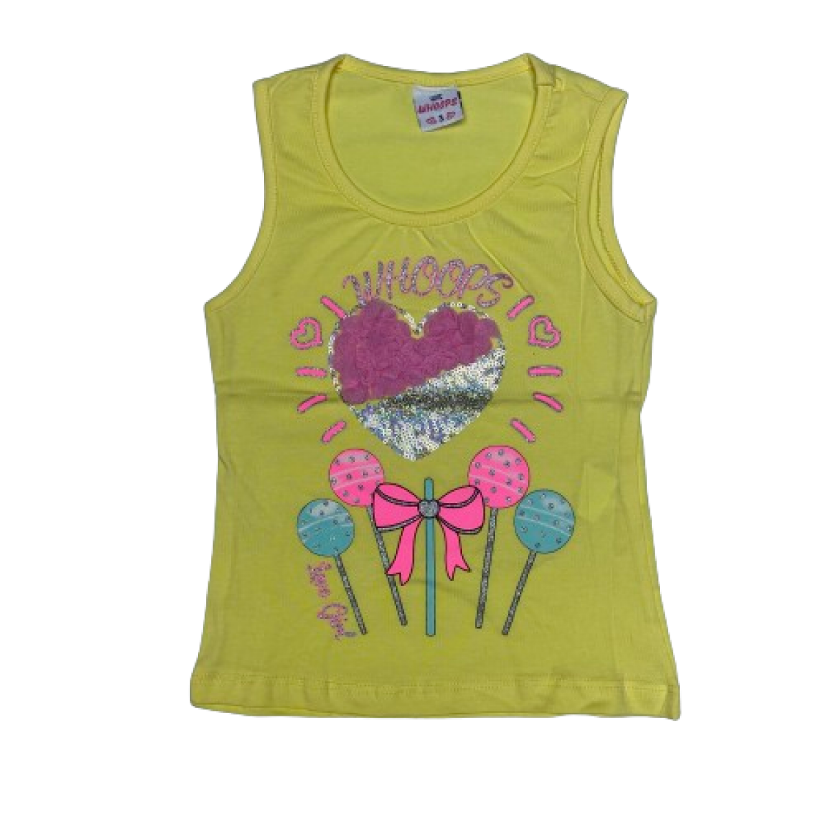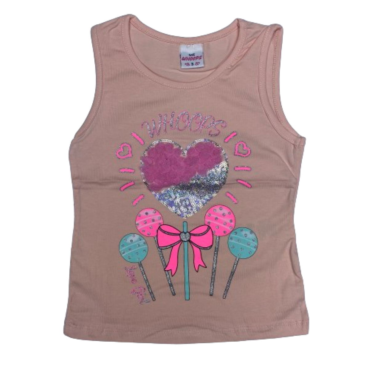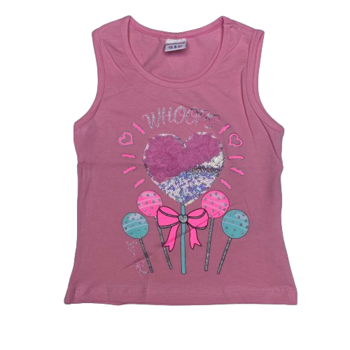 KALPLI SEKER BASKILI SIFIR KOL KIZ T'SHIRT 3-7 YAS