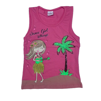 KIZ PALMIYE BASKILI SIFIR KOL KIZ T'SHIRT 3-7 YAS