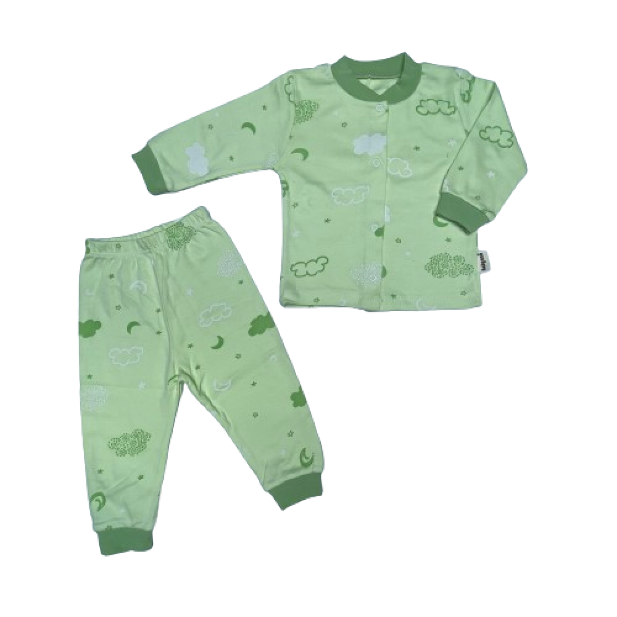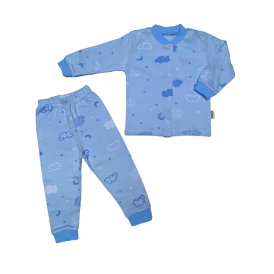4015 BULUT BASKILI ONU ACIK PIJAMA TAKIMI 9-24 AY