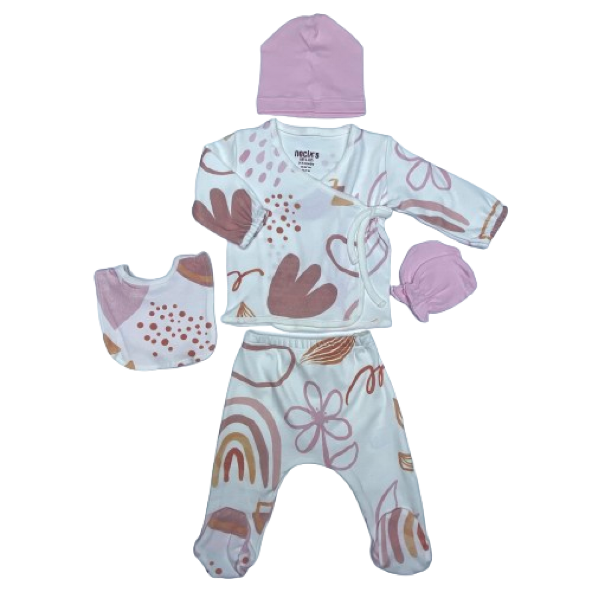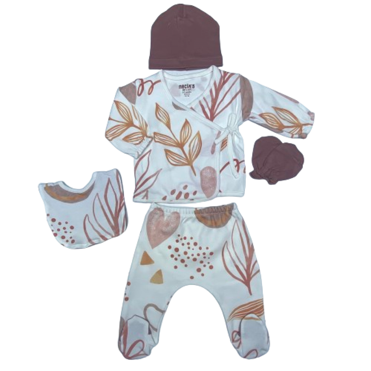 243046 YAPRAK DESENLI 5'LI ZIBIN SET 0-3 AY