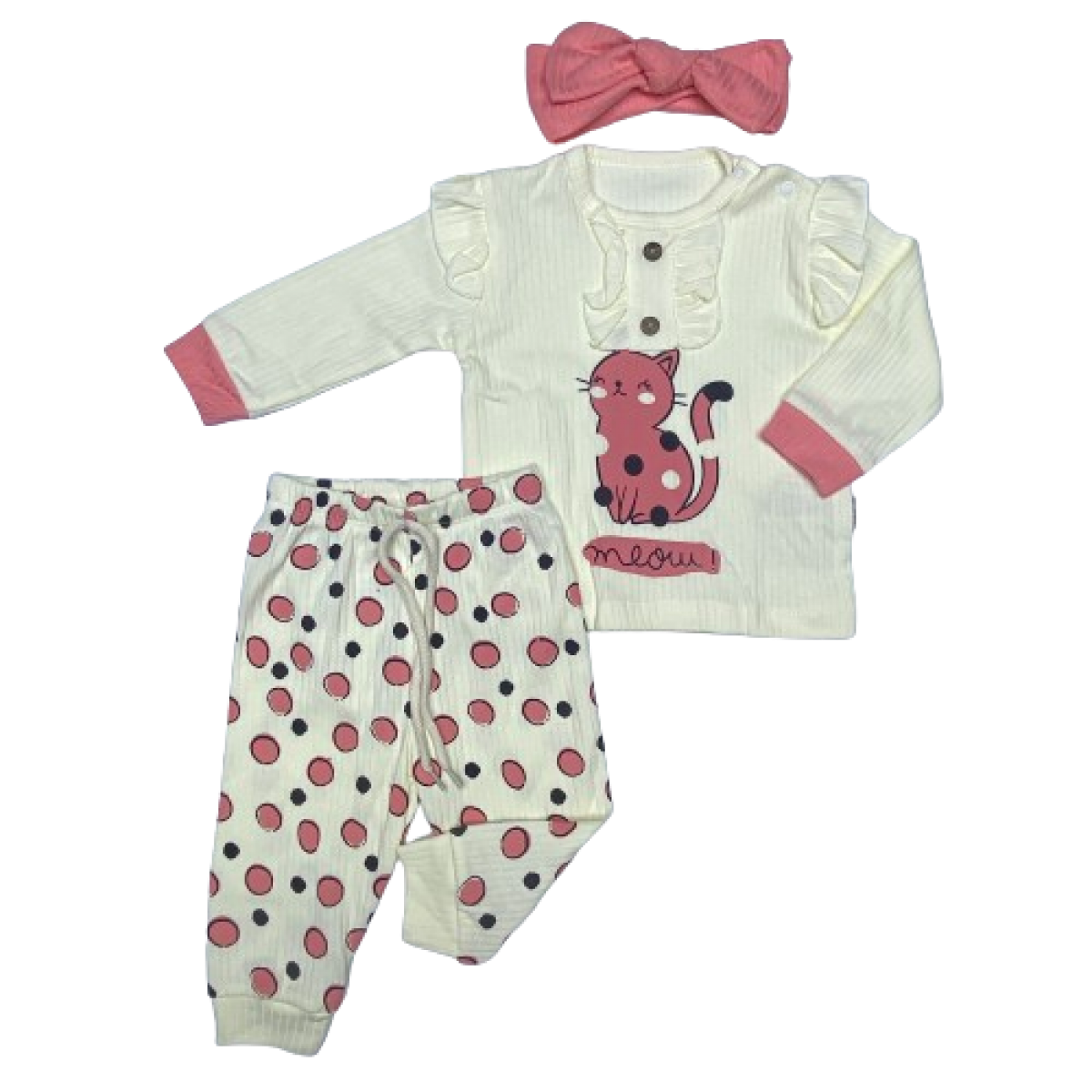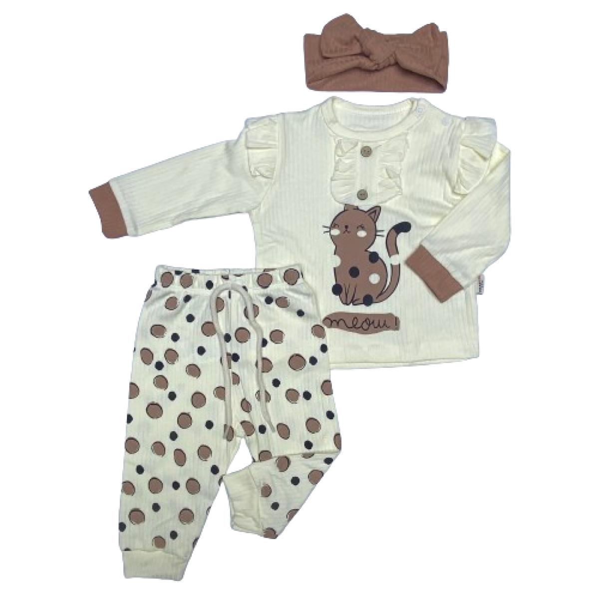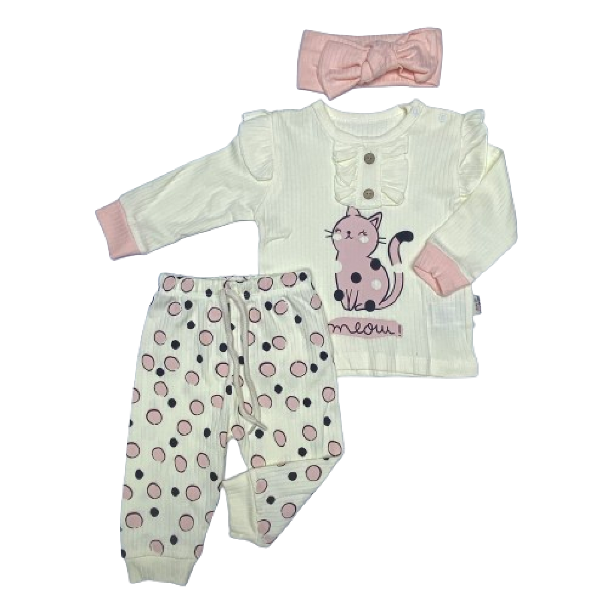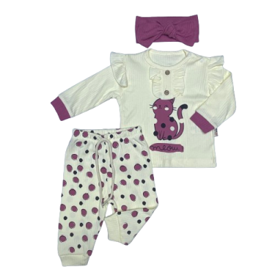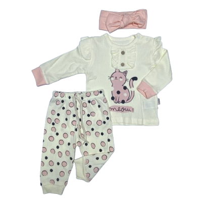 6009 KEDİ BASKILI FITILLI 2'LI TAKIM 9-24 AY