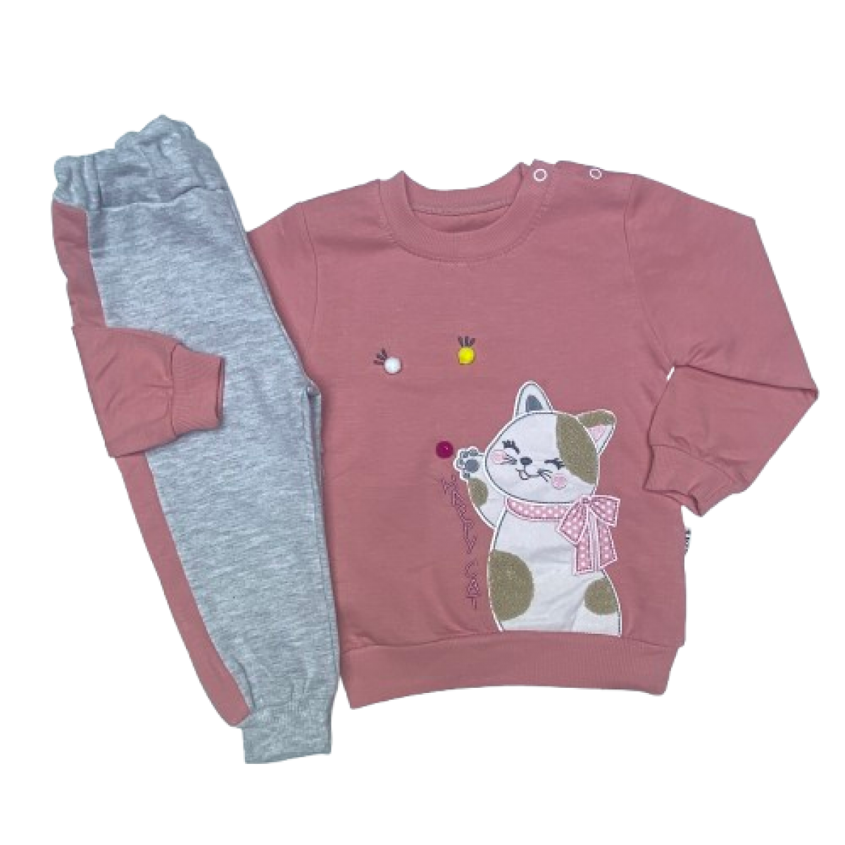 206 PONPONLU KEDI NAKISLI 2'LI TAKIM 6-18 AY