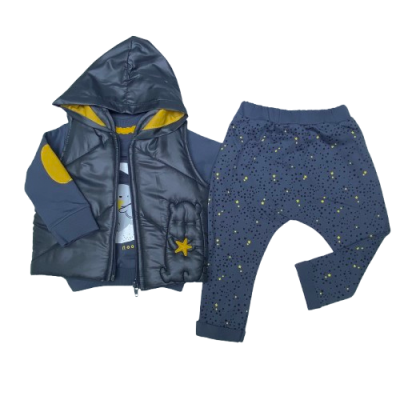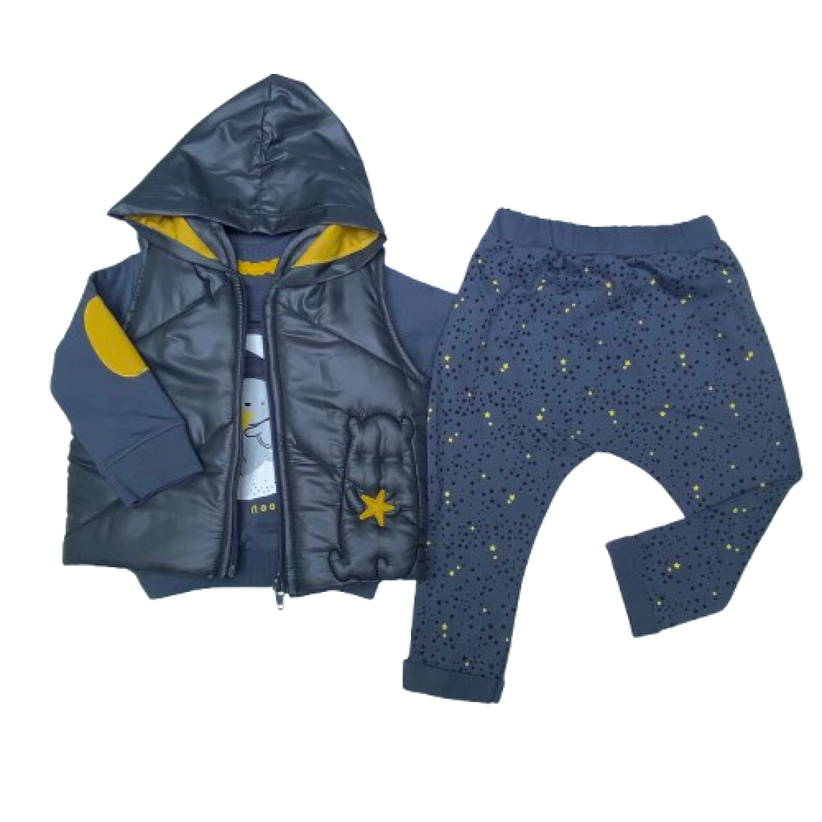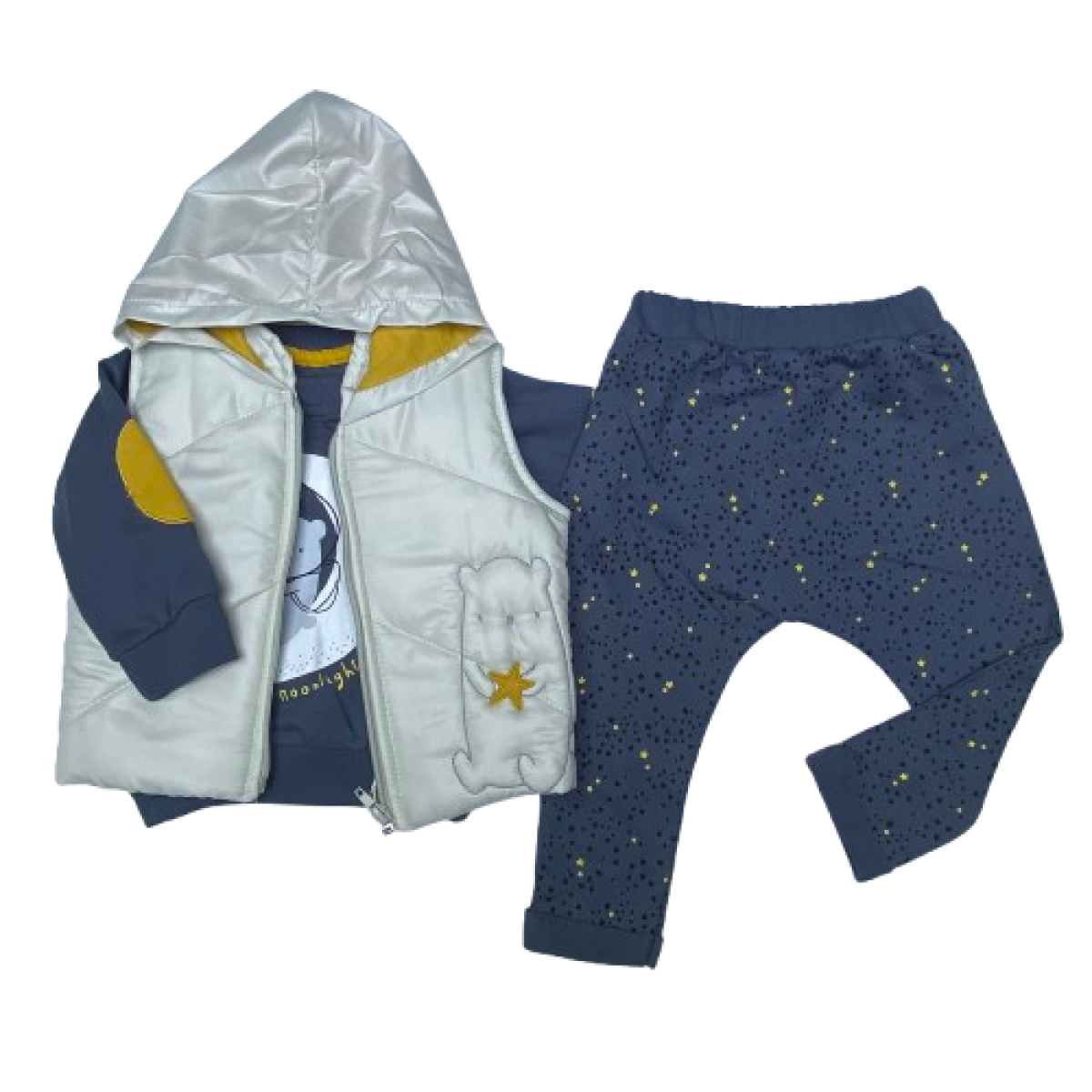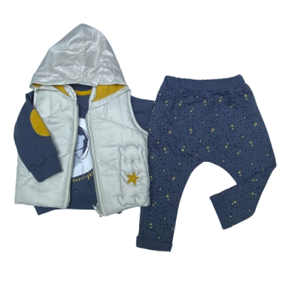 5173 YILDIZLI AYI NAKISLI YELEKLI 3'LU TAKIM 9-18 AY