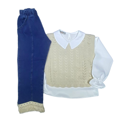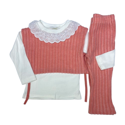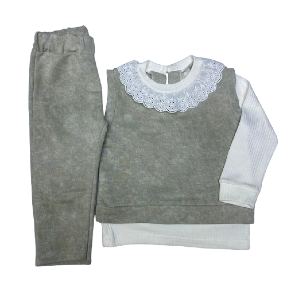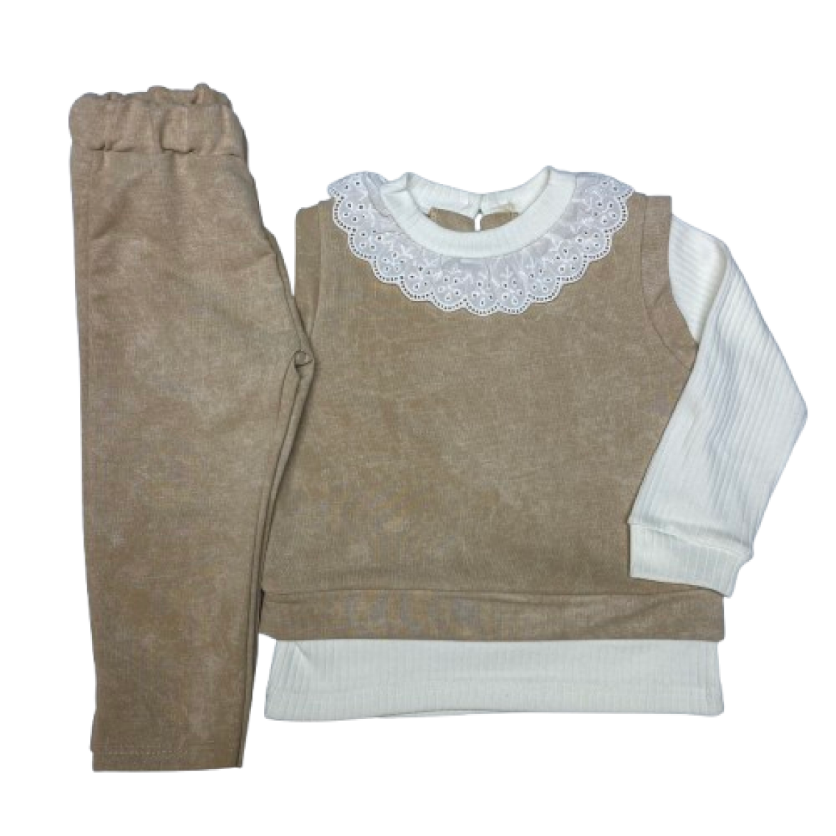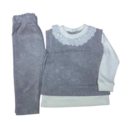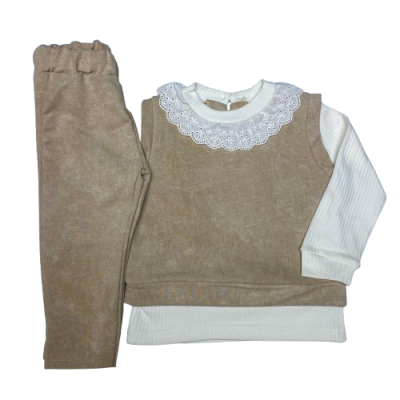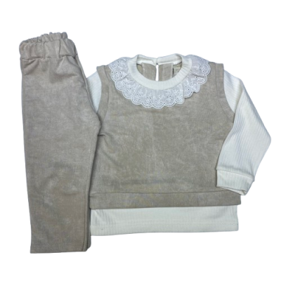 2421 YAKA DANTELLI YELEKLI SUET 2'LI TAKIM 1-4 YAS