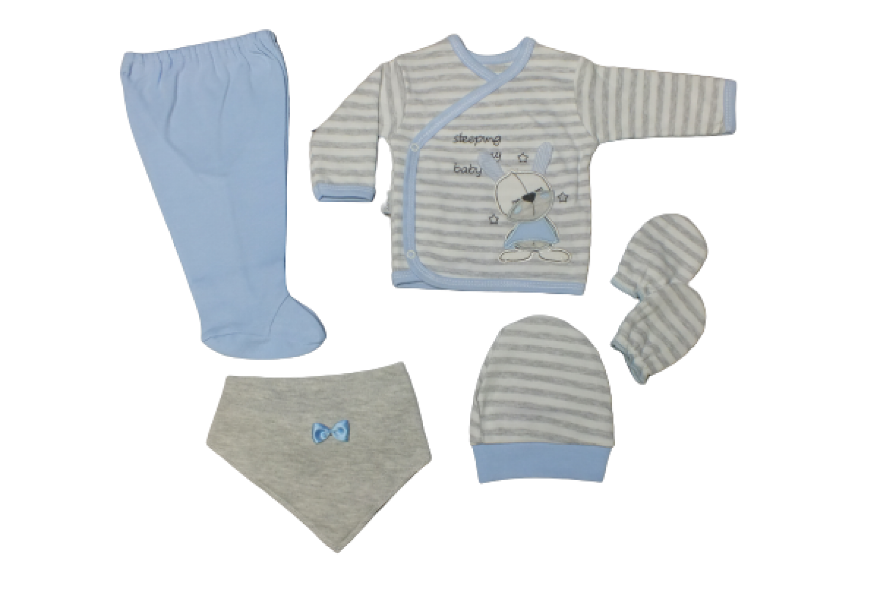 TAVŞAN NAKIŞLI ÇİZGİLİ 5'Lİ ZIBIN SET 0-3 AY