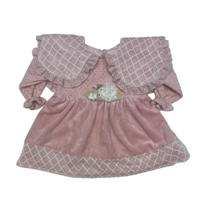 883 DANTEK BEBE YAKALI KADIFE ELBISE 6-24 AY