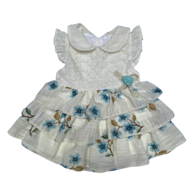 224 CICEK BASKILI FIRIFRLI KETEN ELBISE 9-24 AY