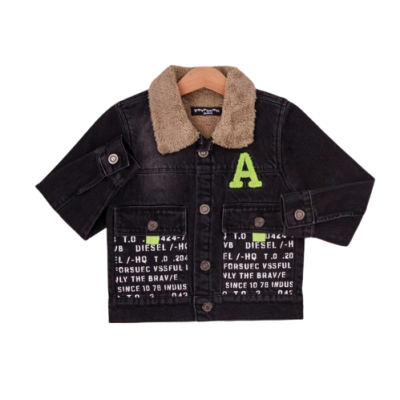 CEP VE KOL YAZI BASKILI KAPSONLU KOT CEKET 3-7 YAS