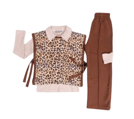 200855 LEOPAR SUVETERLI 3'LU KIZ TAKIM 4-11 YAS