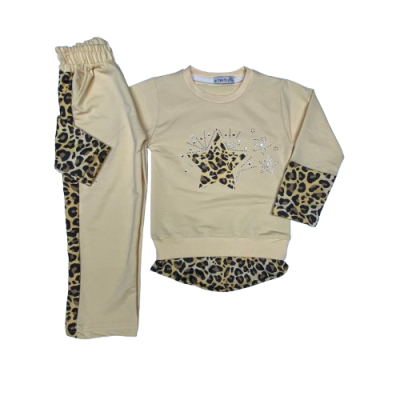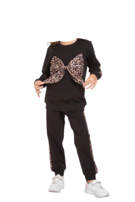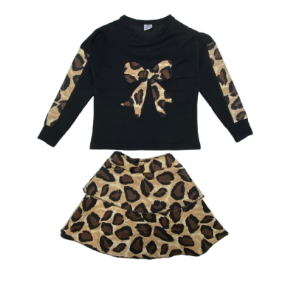 LEOPAR DESENLI KURDELE NAKISLI ETEKLI 2'LI TAKIM 4-12 YAS