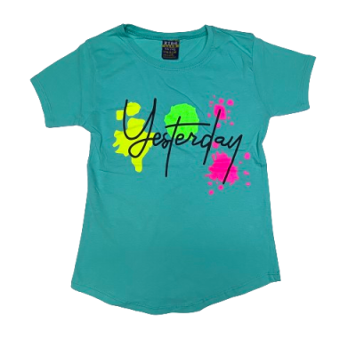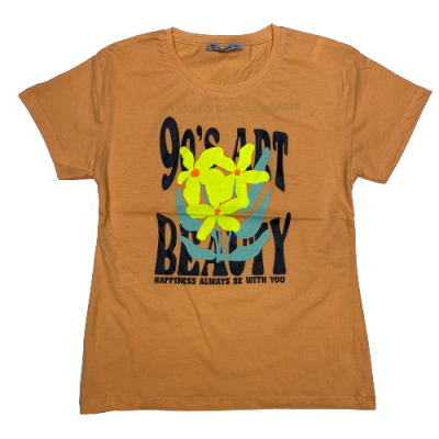180260 CICEKLI YAZI BASKILI KIZ T'SHIRT 13-16 YAS