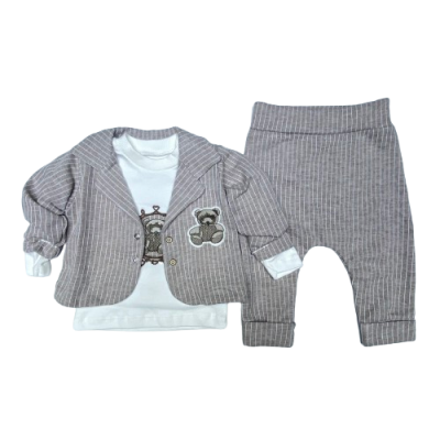 1575 KOPEKLI CIZGILI CEKETLI 3'LU TAKIM 3-9 AY